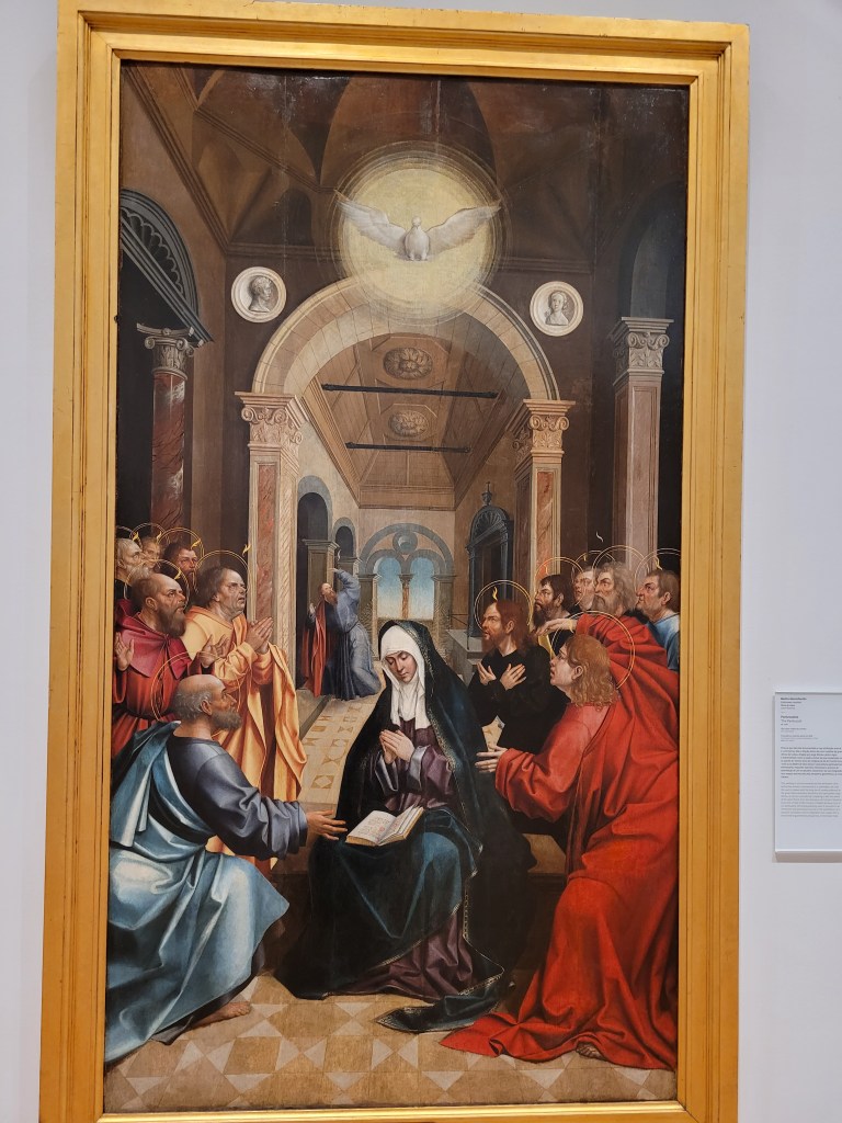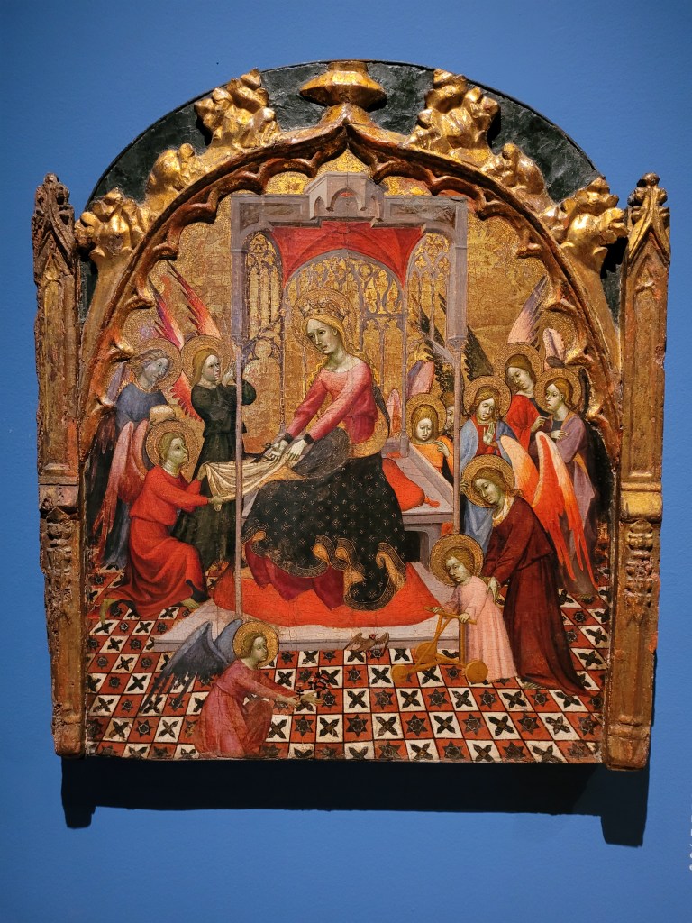 Az időszaki kiállítás nem árult zsákbamacskát (az állandó és az időszaki kiállítás értékkülönbsége kerek két eurót tett ki, így természetesen azt sem hagytam ki). Az első teremben rögtön kiderült, hogy itt bizony 14-15. századi oltárképek kiállításába csöppentem. És most ne az olasz mesterek profi kezei alól kikerülő munkákra gondoljatok, hanem olyan alkotásokra, amin már az örömkönnyeket csalt a szemembe, ha volt perspektíva a képen, és ha a felirat szerinti szentre legalább minimálisan hasonlított a képen megjelenő alak.
