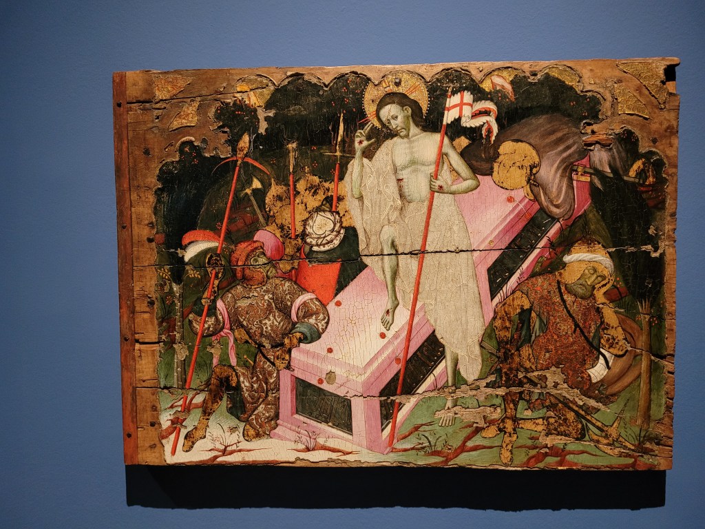Az első képről való tudnivalókat a felirat már szinte túlzott bőbeszédűséggel taglalja, ám annak, hogy Jézus miért került egy rózsaszín koporsó elé a feltámadását ábrázoló képen, egy árva szót sem szenteltek a kurátorok.