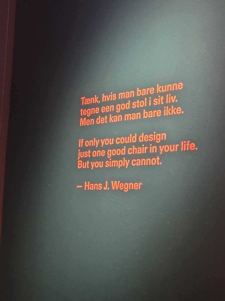 Másnap, a Dizájn Múzeumban éreztem először, hogy kicsit talán túl sok kiállítási tárgy került a szekrényekbe. A kortárs kávéscsésze-kiállítás lenyűgöző volt, több csészét is szívesen megvettem volna, bár egyre sincsen szükségem, mivel nem kávézom. A fenntartható fejlődéssel foglalkozó rész figyelemfelkeltő és jól szerkesztett volt. Tervezhettünk padot, kávéscsészét (a dánok imádnak kávézni) és lámpát is. Nagyon emlékezetes volt a kortársakról megemlékező rész és a székek folyosója. A legjobban mégis a kertben elhelyezett három nagy kődarab tetszett (és azok sem véletlenül kerültek oda). De azért ezt a múzeumot is jó szívvel ajánlom.