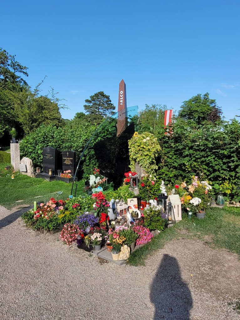 Falco a gimis éveim alatt halt meg, amikor a német VIVA műsorain és toplistáin csüngtünk hétről hétre, és élveztük, hogy értjük az ún. VJ-k (műsorvezetők, a VJ pedig a video jockey rövidítése) által beszélt szlenget is. Én az Out of the Dark című számát kedveltem igazán, rajongónak nem vallanám magam, de gondoltam, ha már itt járok, ellátogatok a sírjához.